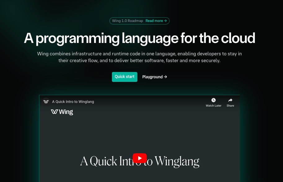 We’re excited to unveil the updated Winglang.io landing page. It now features live Wing code examples, a streamlined search function to quickly find documentation, and easy access to the broader Wing ecosystem and programming language resources.